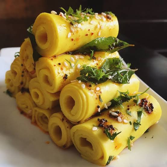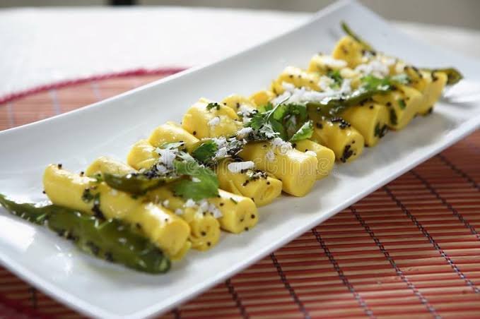 I hope you all are safe and enjoying the new year. Today I am here to share with you a healthy vegan delicacy, 'Khandvi.' This is a high protein snack. Let me tell you why. This delicacy contains gram flour, yogurt, buttermilk, and coconut. So, this dish contains- 1. folic acid,2. calcium,3. vitamin B1, 4. phosphorous, 4. fiber.